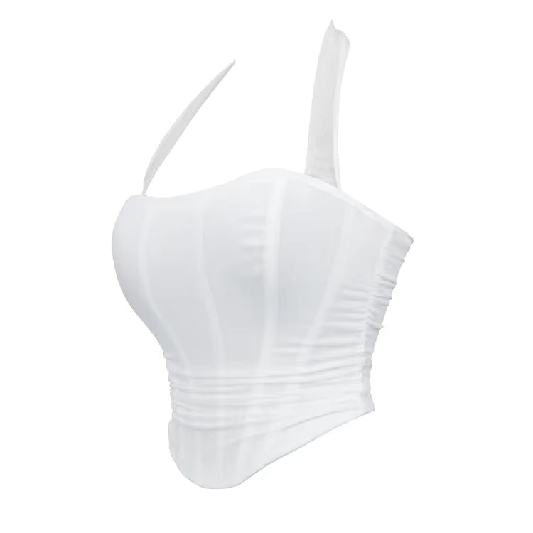 Laissez-vous séduire par la grâce intemporelle de notre corset bretelle blanc. Sa coupe courte façon crop-top dévoile juste ce qu’il faut, tout en sculptant la silhouette avec élégance. Les bretelles à nouer dans la nuque apportent une allure délicate et ajustable selon vos envies.