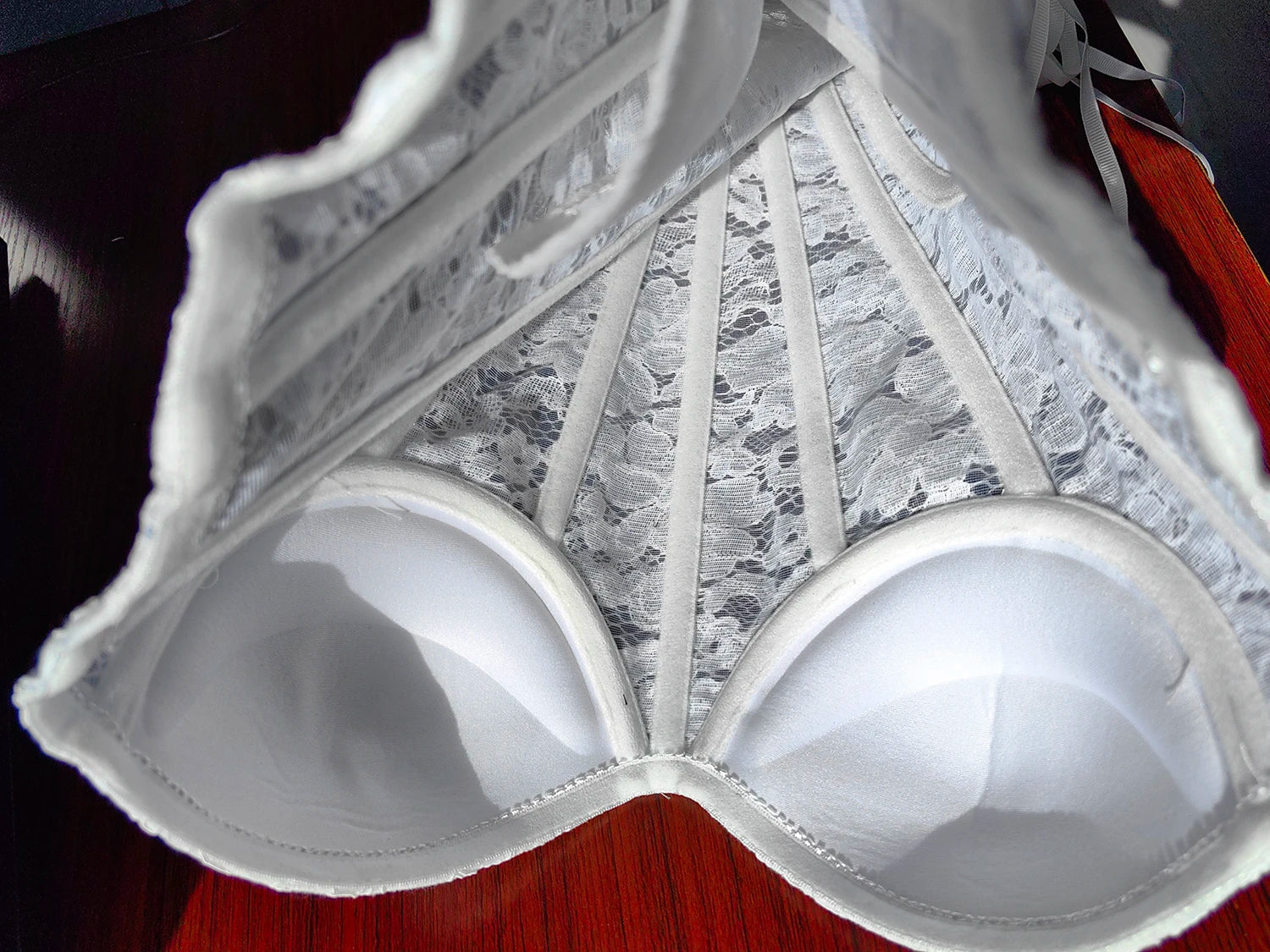 Découvrez l’alliance parfaite entre élégance et structure avec ce corps conique en dentelle blanche. Ses armatures métalliques dessinent une silhouette affirmée, tout en sublimant la délicatesse de la matière.