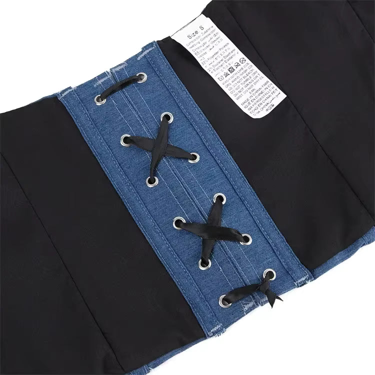 Le corset denim n’est pas seulement un vêtement, c’est une véritable déclaration de style.