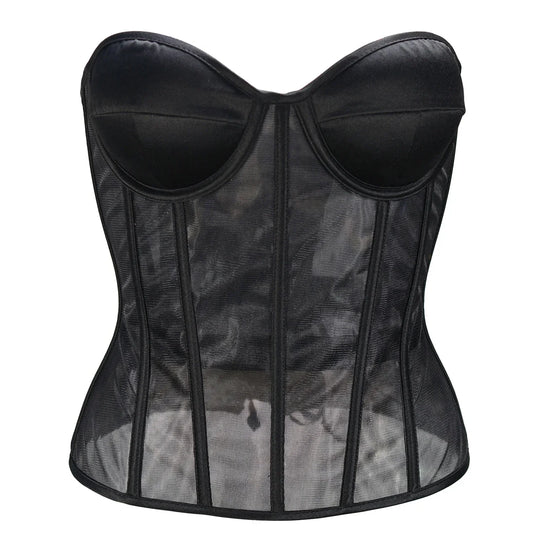 Les jeux de transparence révèlent sans dévoiler, caressent sans contraindre. Dès que vous portez ce corset, la magie s'installe. Il s'attache dans le dos à l'aide de lacets. Ses bonnets subtilement rembourrés, mettent en valeur et soutiennent votre poitrine. S'associe à merveille avec un pantalon "over size" de style costard ou avec une jupe crayon. Ajoutez-y vos plus beaux escarpins et l'attraction sera au rendez-vous ! Ce corset va littéralement transformer votre silhouette. Vous gagnerez immédiatement en assurance et en confiance. Vous vous sentirez instantanément élégante et attirante. Chaque détail est impeccablement choisi et l'attractivité sera au rendez-vous ! Enfilez-le et laissez la magie opérer !