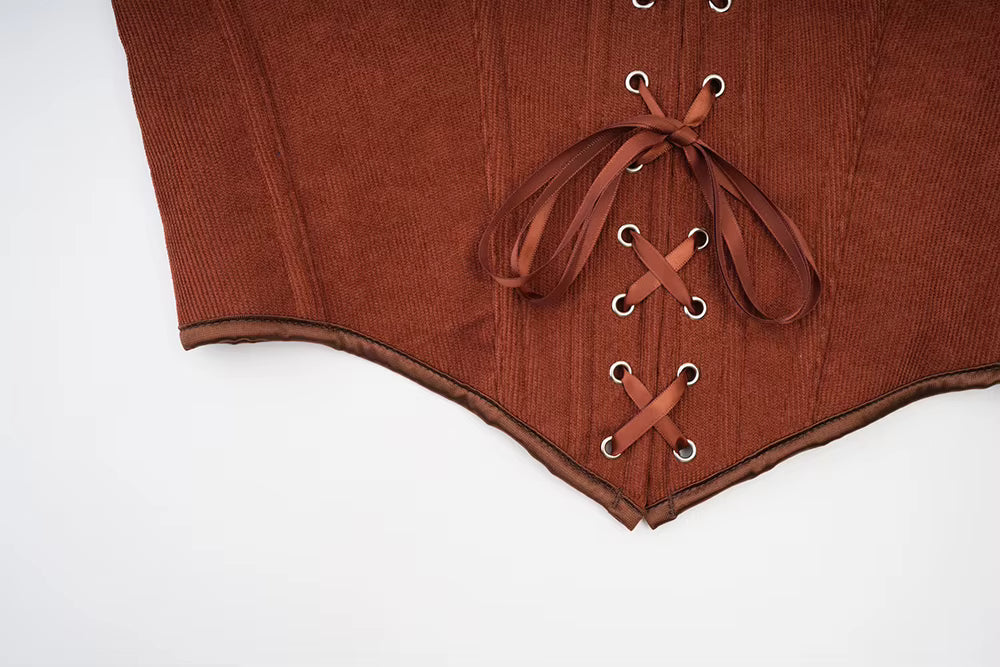 Apportez une touche d’authenticité à vos tenues médiévales avec ce corset brun en tissu, à la fois sobre et élégant. Son design s’inspire des silhouettes d’autrefois tout en offrant un confort moderne.