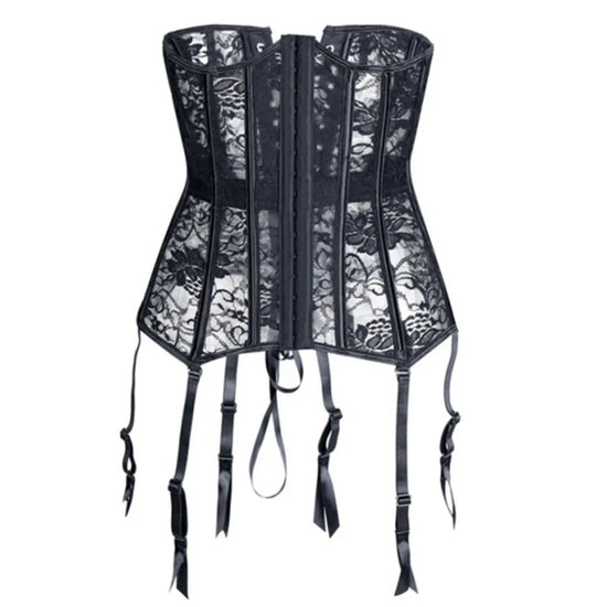 Grâce à ce corset, il ne peut plus décrocher son regard de vous. Votre corps est mis en valeur et votre taille est affinée sans se sentir compressée grâce aux lacets et aux agrafes ajustables selon vos besoins. Vos épaules dénudés vous font un magnifique port de tête. Les jeux de transparence vous rendent irrésistible. Une fois le tenue complétée et accessoirisée, vous ravivez la flemme pour toute la soirée. Vous vous sentez à la fois sexy, séduisante et désirée. Pour plus de folie, enfilez vos porte-jarretelles en dentelle noire et sortez votre plus beau rouge à lèvres. Portez le tout, et le soirée s'annonce magique !