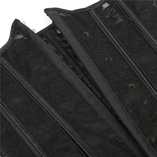 Sublimez vos courbes avec ce corset raffiné en dentelle noire, conçu pour allier sensualité et confort.