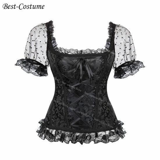 Sublimez votre silhouette avec ce corset princesse noir, alliant sophistication et charme intemporel. Conçu en dentelle délicate, il se distingue par ses tailles finement travaillées et ses petites manches courtes bouffantes qui apportent une touche de grâce royale.