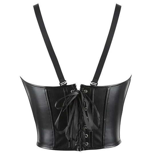 Mettez en valeur votre silhouette avec ce corset en simili cuir, conçu pour sublimer les courbes tout en offrant un maintien confortable. Sa coupe sous-poitrine épouse parfaitement vos formes.