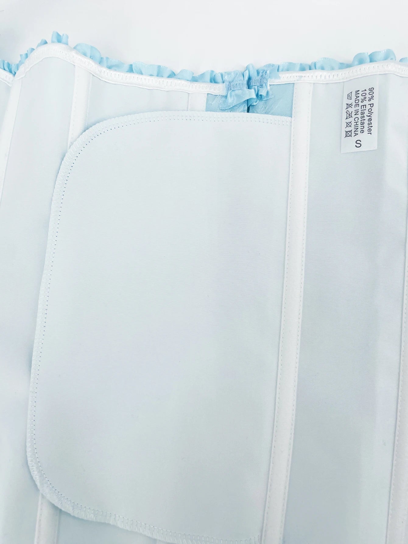 Il est élégant grâce à sa couleur unie bleue clair qui ajoute une touche de simplicité et de luxe. Le lacet central habille délicatement votre décolleté.