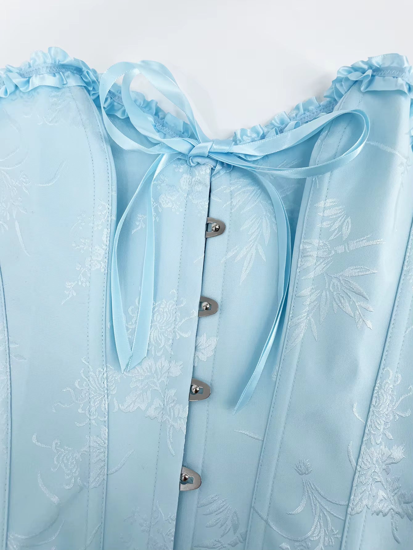 Dans le dos, un panneau de tissu supplémentaire vient délicatement couvrir la peau lorsque le corset est porté plus lâche, offrant une allure soignée et ajustable selon vos envies. Idéal pour sculpter la taille, sublimer la posture et apporter une touche romantique à vos tenues, qu’elles soient historiques, gothiques ou modernes.
