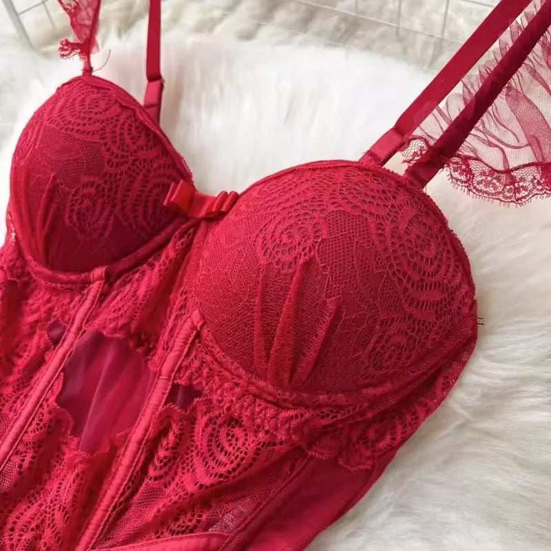 Pour plus de folie dans votre quotidien, osez la lingerie corset. Il sublime votre corps, grâce à ses détails en dentelle. Vous vous sentirez attirante, belle, confiante et unique. Ce corset peut s'employer autant pour un shooting photo privé que dans votre intimité. Il vous transforme en femme sensuelle, souveraine de ses désirs. Une célébration du plaisir assumé et du pouvoir de suggestion. Pour raviver la flamme ou pour le simple plaisir de se sentir irrésistible, cette tenue osée doit faire partie de votre garde-robe secrète ! Il se porte à même la peau et s'associe à merveille avec des porte-jarretelle de la même couleur.